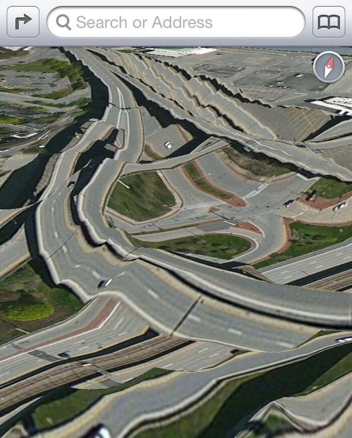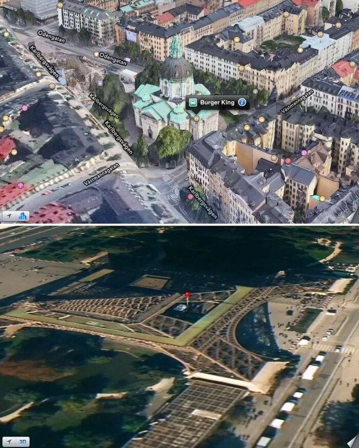 В 2012 году Apple заменила карты Google в iOS 6 на Apple Maps. Приложение содержало ошибки: мосты выглядели деформированными, дороги были искажены, а города находились не на своих местах.