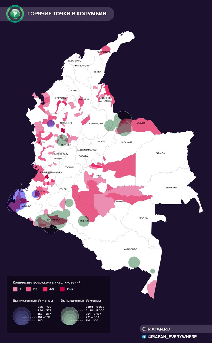 Это отдельная головная боль для колумбийских военных — им слишком часто приходится «тушить» большое число мелких конфликтов. Пока они разбираются в одном регионе, бои между боевиками идут в соседнем. А перебрасывать с места на место части накладно.