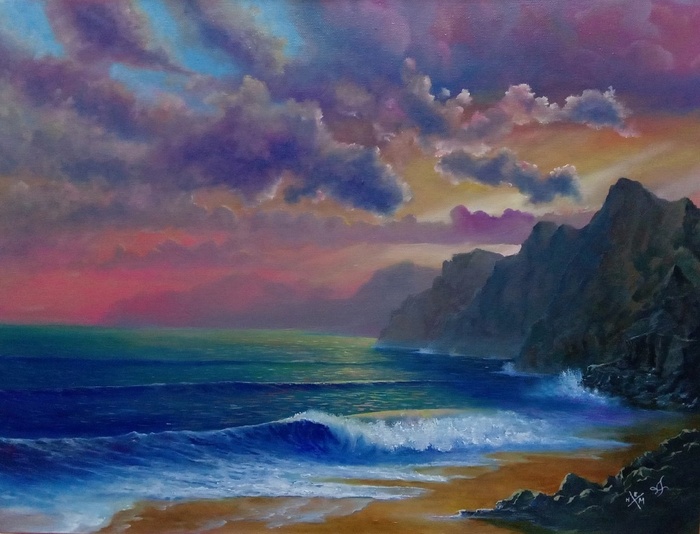 Финал. Использовал масло, акрил, как обычный так и с примесями, световой акрил, а-ля неон, и как ни странно свои кривые руки.