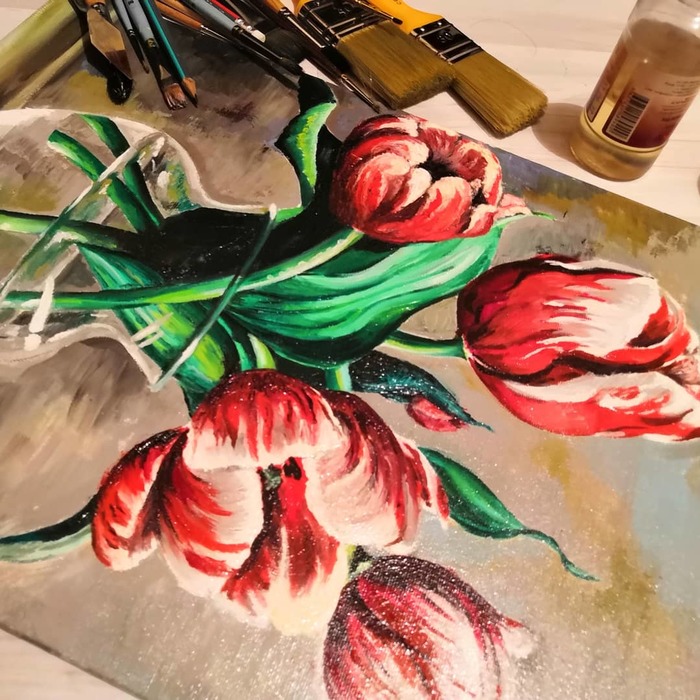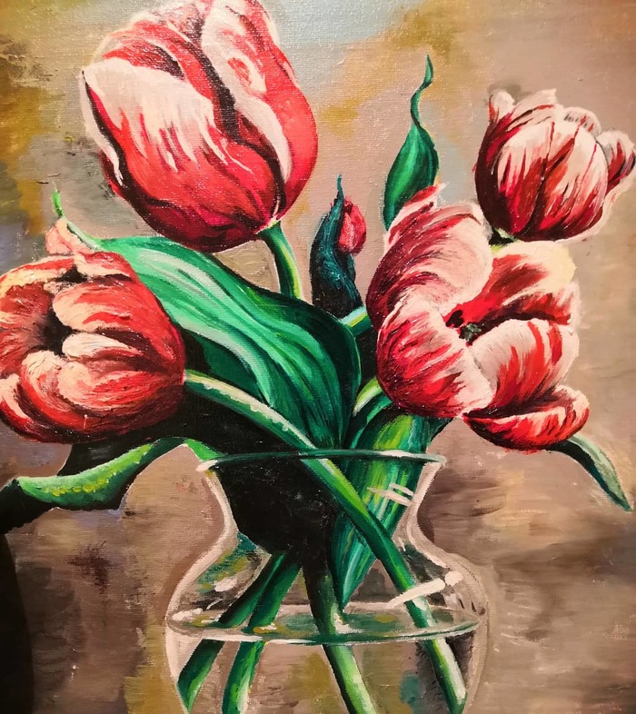 Привет Пикабу, попробовала себя в написании картин маслом, всегда боялась но вроде получилось симпатично.
