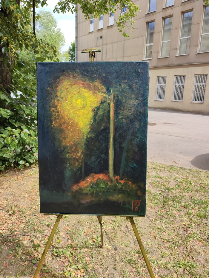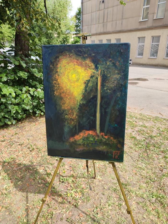 "одинокий фонарь", 2023, 70х50 см, масло, холст на подрамнике. 35 000 ₽