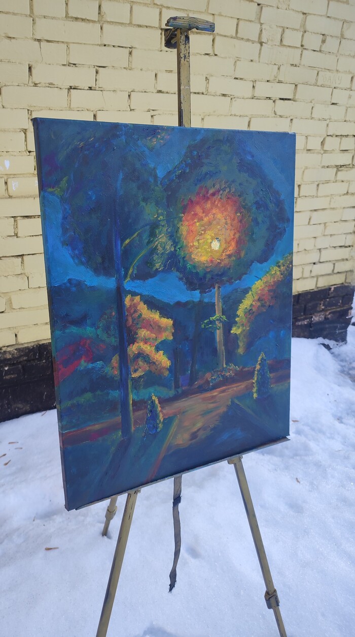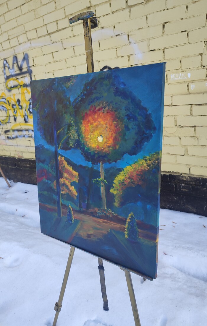 #ночь #фонарь #природа #пейзаж #арт #творчество #влог #винтерьер #нахолсте #контраст #Москва #СПБ