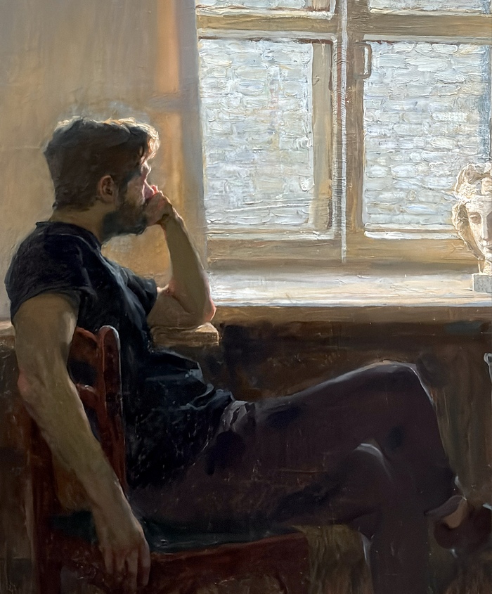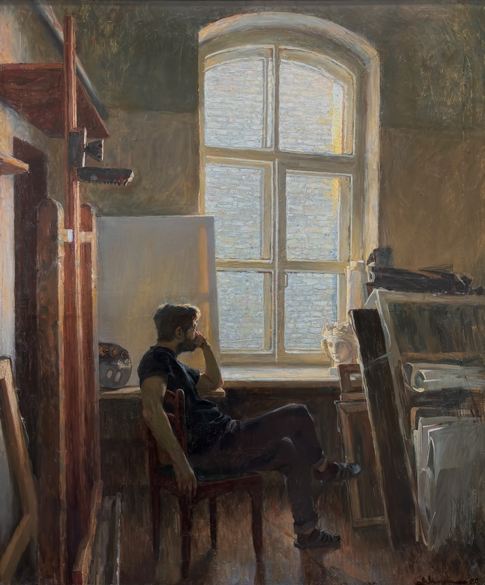 Каждый из нас всю жизнь ведет внутренний диалог. Совершенно о разных событиях. Начиная от: что купить сегодня в магазине, до полюбить ли врага своего? Низкие и высокие мысли томятся в душе человеческой. Порою так и не находя ответа. У художника, как и у любой творческой личности, тихо дыша, стоит за спиною тень сомнений. Терзая, при любом творческом начинании.