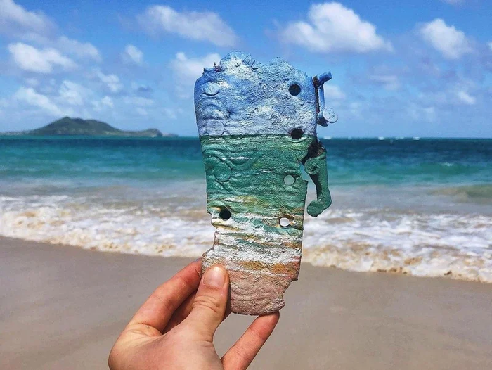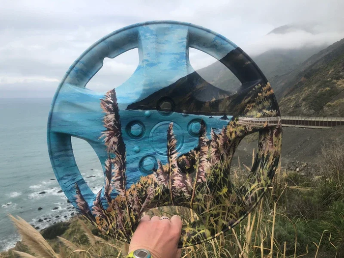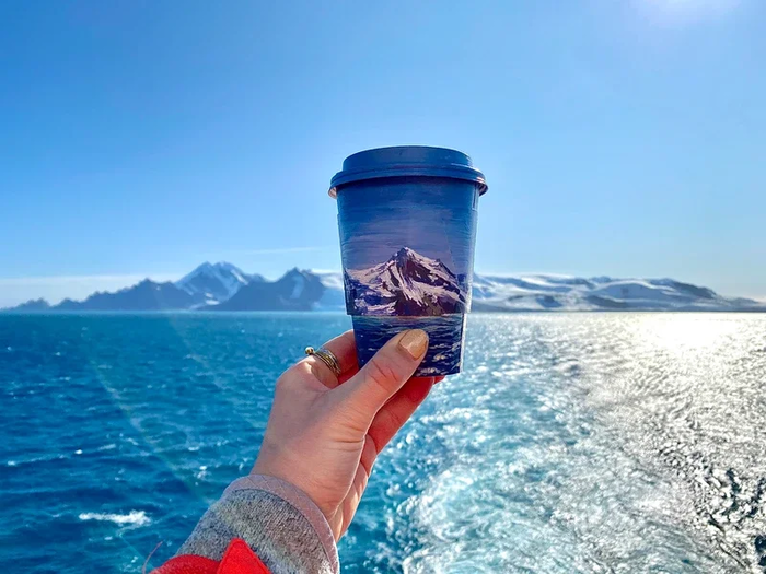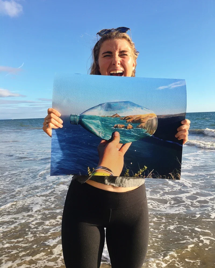 Процесс довольно прост. Она посещает потрясающие места, пляжи и национальные парки по всему миру, а затем рисует эти виды на отходах, оставленных посетителями. Идея состоит в том, чтобы способствовать сбору отходов и вторичной переработке.