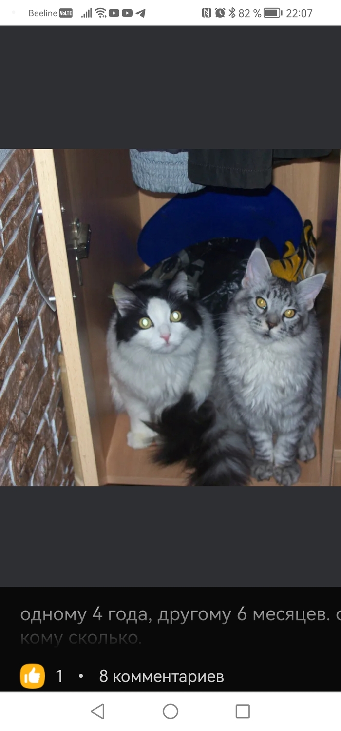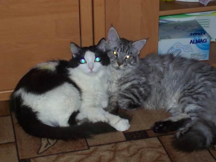 Мои два кота спали вместе, дрались, и умерли почти вместе, сначала мейнкун Урс умер от рака, а через три недели обычный кот Мяка. Первому было 13 лет, а второму 17. Мяка умер неожиданно, я еще не успела опомниться от смерти Урса, перестал есть другой кот. Они всегда были вместе, вместе и ушли. Каждый день их вспоминаю.
