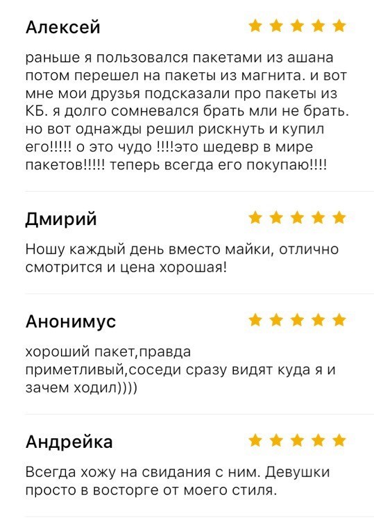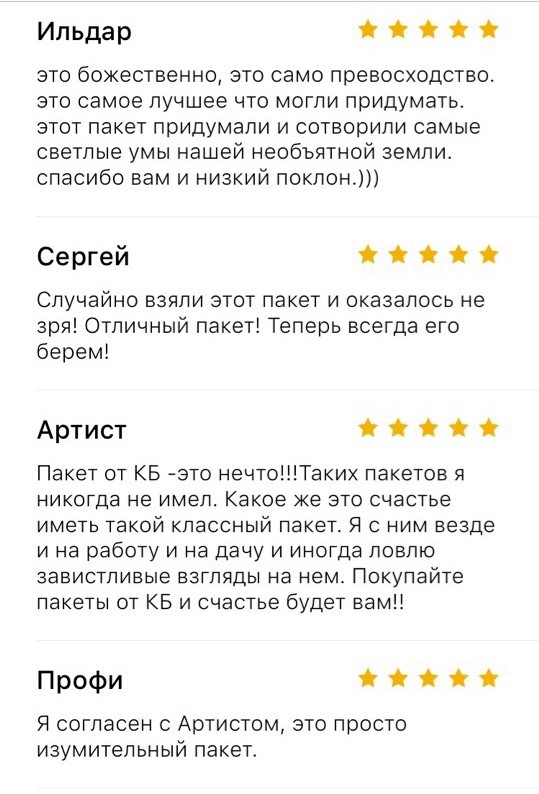 Отзывы на пакет, как отдельный вид искусства