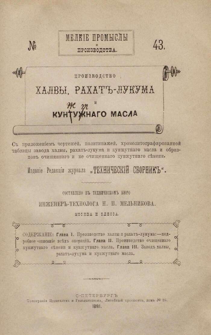 Подборка книг по приготовлению чернил, клея и халвы 1880-х годов