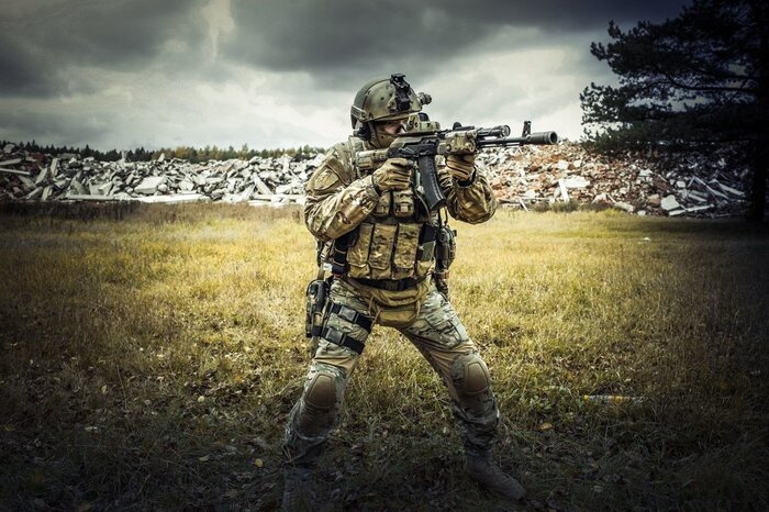 Далее, при работе в двойке и когда у первого номера заканчиваются боеприпасы, второй номер должен находиться сзади, почти шаг в шаг. Дело в том, что ширина окопов разная и не всегда удается сменить друг друга, поэтому первый номер, у которого закончились боеприпасы, понижает уровень и производит смену, в этот момент, почему и писал выше, чтобы ствол находился вверх, его легче опусттить в направлении предполагаемой цели и произвести стрельбу.