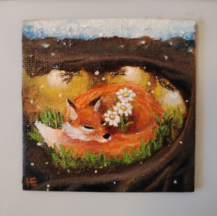 Увидела в продаже холсты на магнитах, стало интересно. Опять же, магнитиков с зимой на холодильнике нет, значит, надо самой нарисовать.