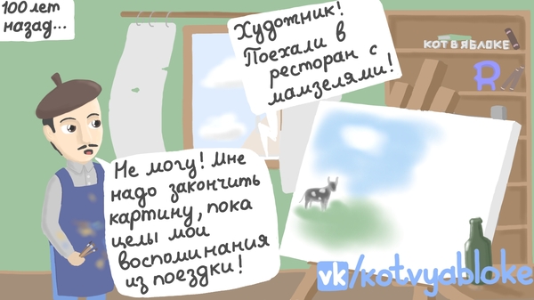 Были с девушкой в картинной галерее. И вот, духовно наполняясь красотой картины, к ней вплотную подходит отец вместе с дочерью. Та немного посмотрев на неё начала тыкать в картину пальцами и что-то спрашивать у отца, он тут же говорит ей: "Что так себя вести нельзя! Это ж картина! Ею можно только любоваться". Тут появляется мать девочки и начинает гнать на отца: "Ты что такое говоришь ей, пусть трогает, нельзя запрещать детям, если они хотят!" И уходят дальше по галерее.
