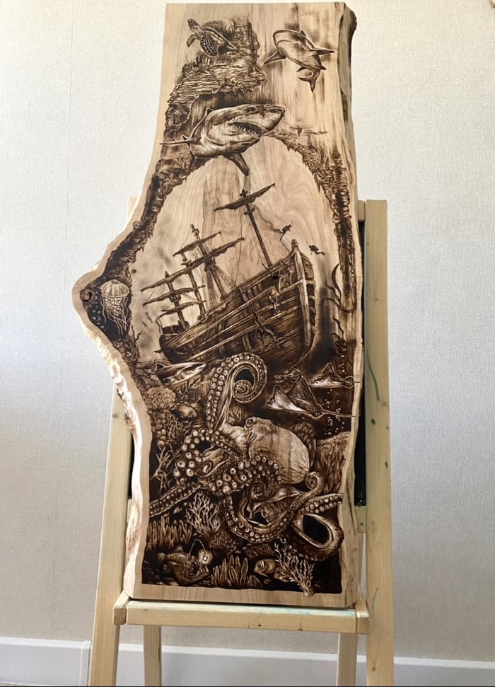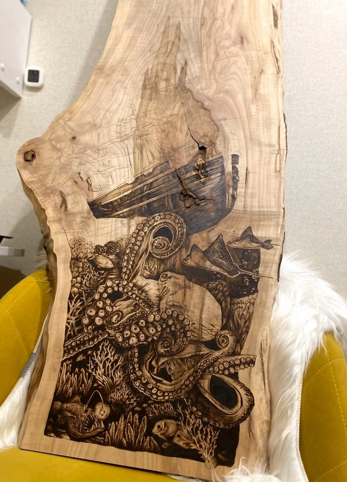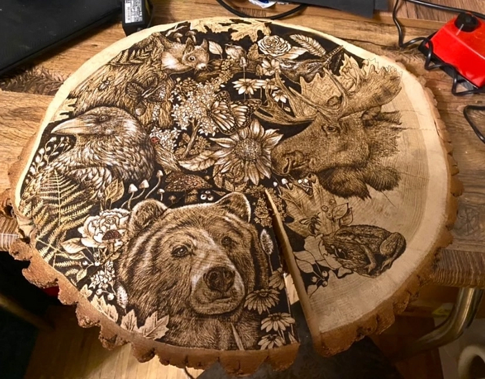 Здравствуйте! Я мастер пирографист, что по русски значит «мастер ручного выжигания по дереву». Второй год работаю в данном направлении и сейчас покажу вам процесс создания двух крупных работ, так как многие любят смотреть именно сам процесс. Одна из работ, кстати, в наличии.