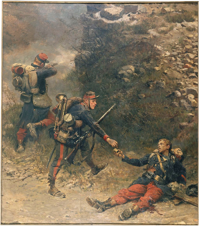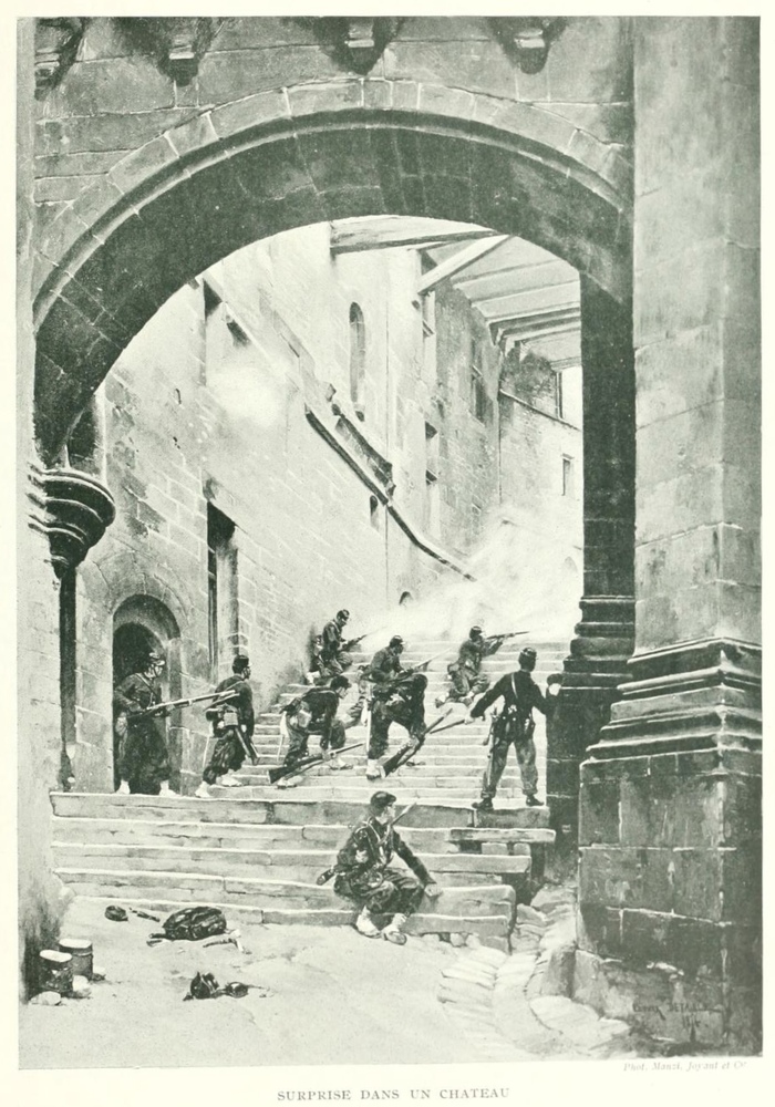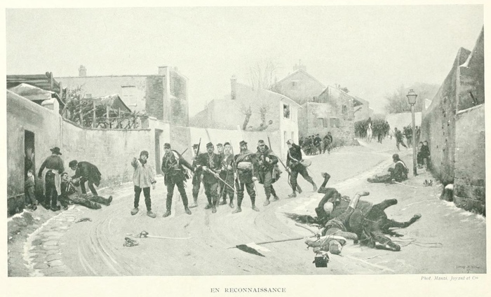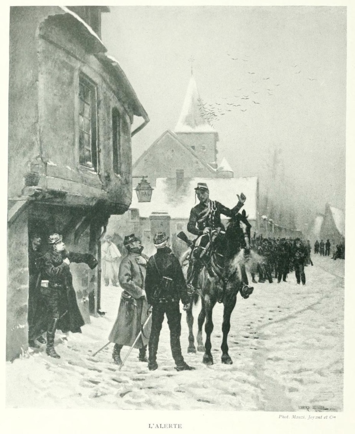 Весной 1870 г. Детай в поисках сюжетов посетил в Испанию и Алжир и едва он возвратился, как вспыхнула франко-прусская война 1870—1871 гг. и художник вступил в ряды сенской подвижной стражи. Он состоял секретарём генерала Аппорта, имел возможность видеть различные перипетии боевой жизни, близко изучить дух и быт солдата, проникнуться горячей симпатией к нему и заготовить большой запас этюдов, послуживших потом художнику материалом для последующих произведений