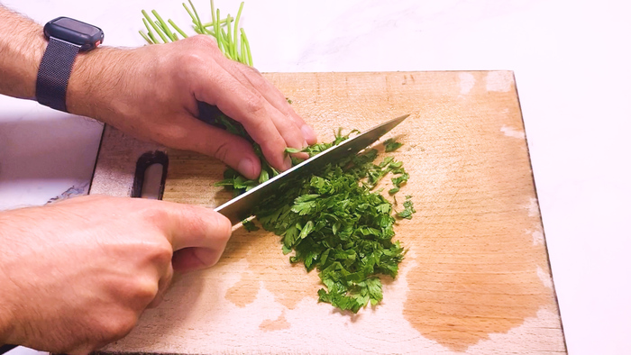 Петрушку мелко нарезаем.