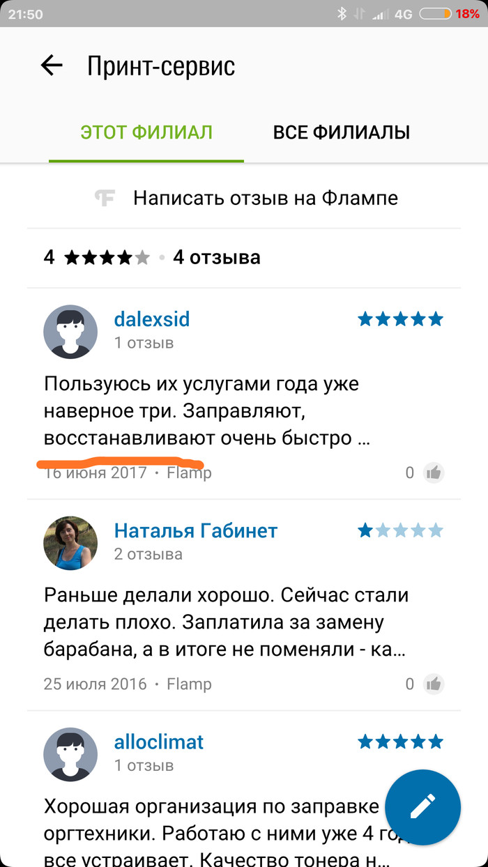 Через определённое время использования, а точнее в марте 2018, неожиданно заканчивается тонер. Беру картридж и несу на заправку. Нашел не далеко от дома сервисник. Менеджер принял картридж и попросил подождать минут 20. Сделав круг по району, я снова вернулся в центр. Картридж был уже заправлен и ждал меня на столе. Менеджер с огорчением сообщил, что требуется заменить барабан и какую-то магнитную штуку. Так как, судя по образцу, который мастер распечатал на своем приннтере, эти детали свое отжили. На образце явно виднелись белые полосы справа и слева. Да и весь текст в общем был блеклый. Я возразил, сказав, что мы печатали на нем вчера, пока он не закончился. Качество печати было отличное. Менеджер долго уговаривал меня согласиться на замену деталей. Даже принес новый барабан для сравнения. Указал на все дефекты на старом барабане. Решили на том, что я дома сам попробую распечатать пару страниц. Так и сделали.