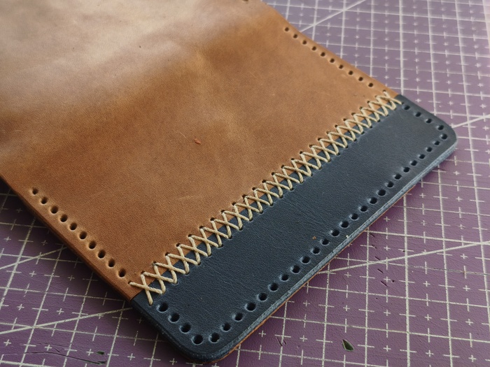 Ошибся при раскрое обложки, добавил полоску другого цвета, так как кончилась коричневая кожа