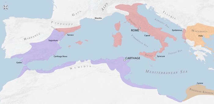 Вторая Пуническая война столкнула Римскую Республику с другой великой державой Средиземноморья — Карфагеном, древним городом, расположенным на территории современного Туниса. Карфаген контролировал береговую линию Северной Африки и Пиренейского полуострова. Рим надеялся использовать свое военно-морское господство для вторжения и заставить своего соперника принять римские условия мира.