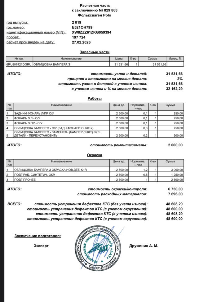Фото повреждения и расчета прилагаю. Всем заранее спасибо.