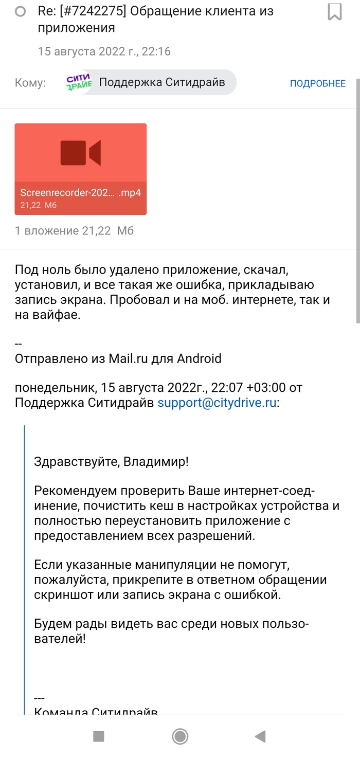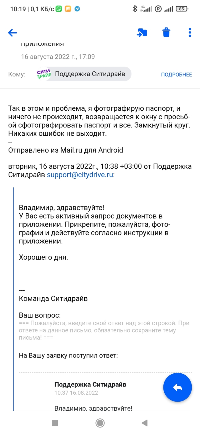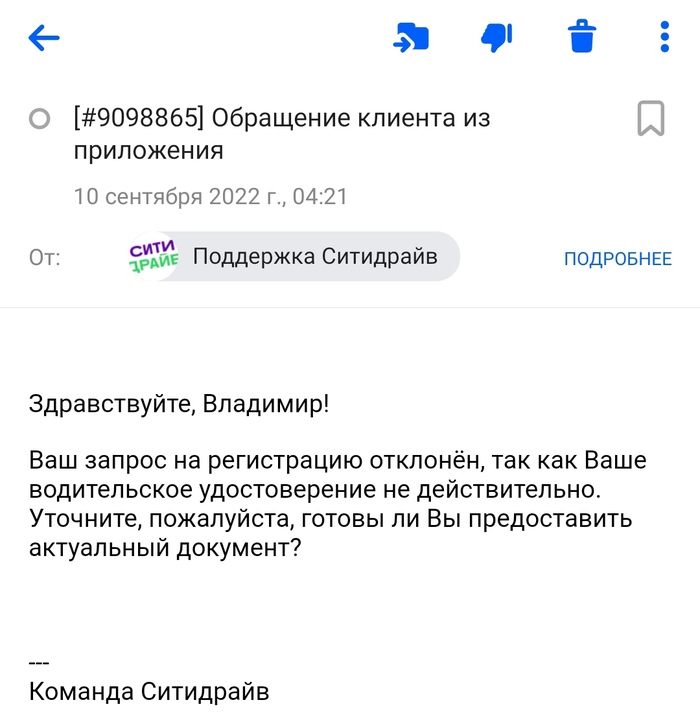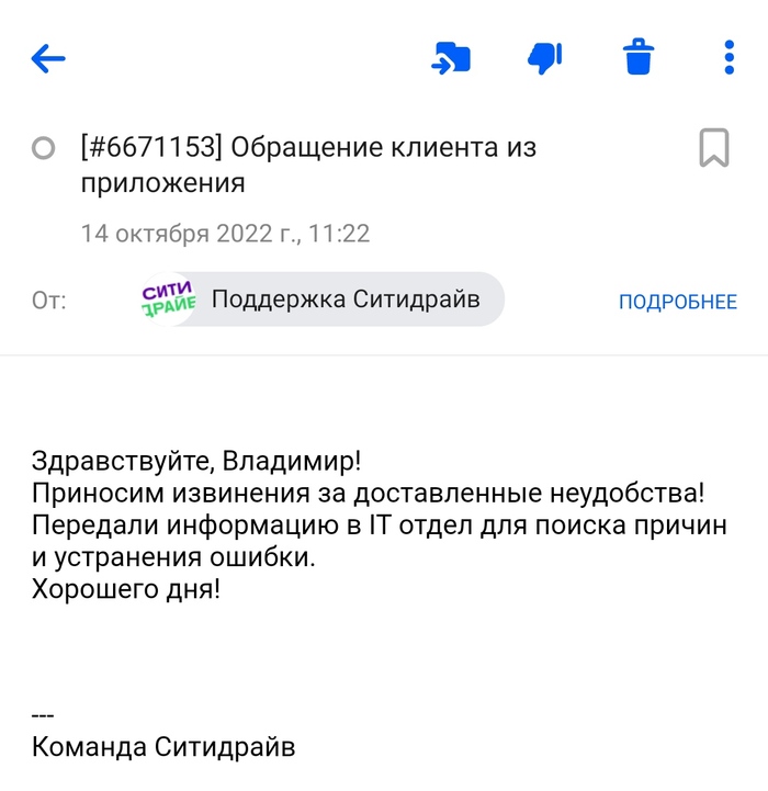 Почему считаю поведение поддержки Ситидрайва неадекватным