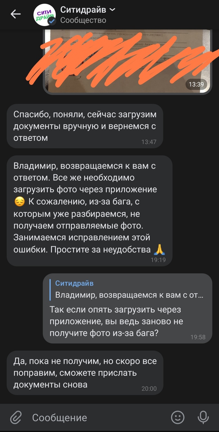 Обратите внимание на поведение поддержки Ситидрайва и при возможности выбирайте другой сервис каршеринга 👆🏻