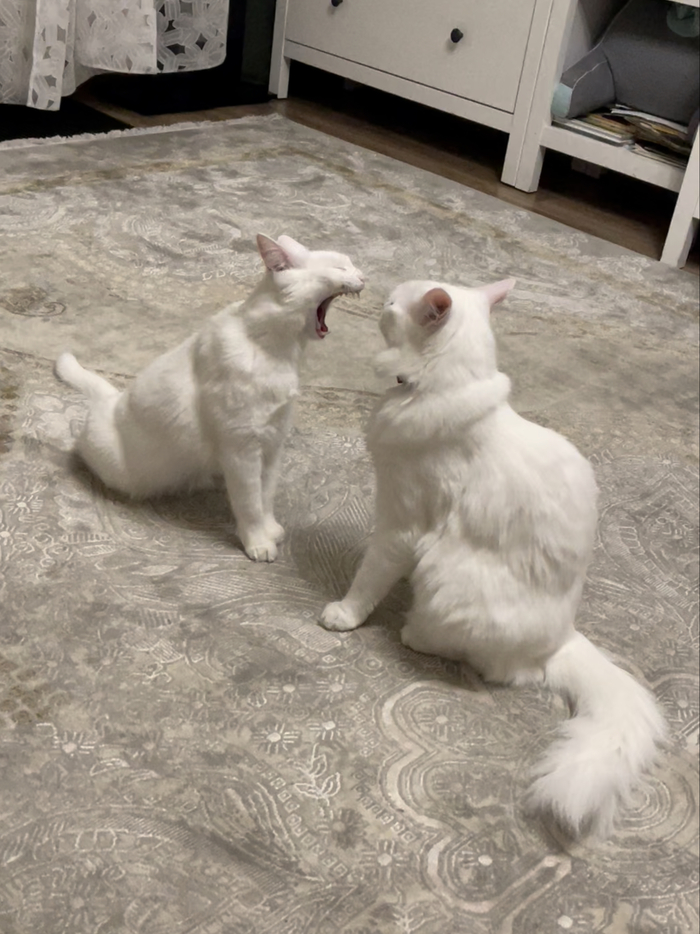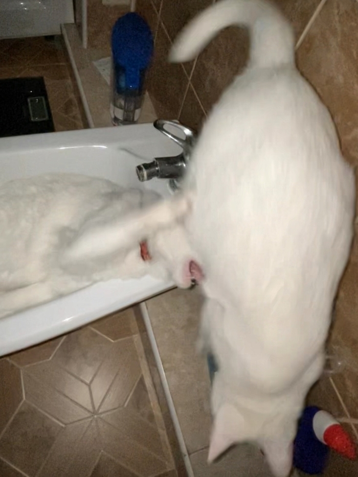 Солнышко пускает зайчики по стенам, котейки наслаждаются весенним днём и вообще: белые-пушистые делают только то, что доставляет им удовольствие. Невольно чувствую зависть. Не сильную, так: чуть-чуть… Когда же я стану такой же беззаботной, ленивой и красивой, а?