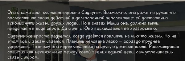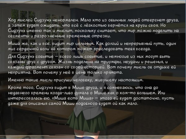 Затянула эта игра его круче, чем меня, прошёл, кажется, за сутки без перерывов на сон. И захотел ещё. Я к тому времени был наслышан о похожем проекте с большим уклоном уже в японскую культуру — да, да, той самой Katawa Shoujo. Так что её мы проходили уже одновременно, делясь впечатлениями и т.д. А потом от Степана последовал ожидаемый вопрос: «Можешь посоветовать какое-нибудь хорошее аниме?»