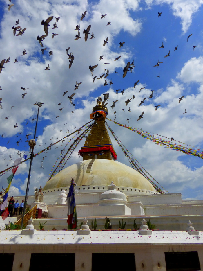 Погуляв по окрестностям, мы поехали смотреть Ступу Боднатх. Передвигались мы, кстати, на такси, они в Непале стоят достаточно дешево, главное сразу договориться о цене, чтобы в конце пути не было такого, что Вам озвучат цену, в 10 раз превышающую реальную. Ступа произвела на меня ошеломляющее впечатление.