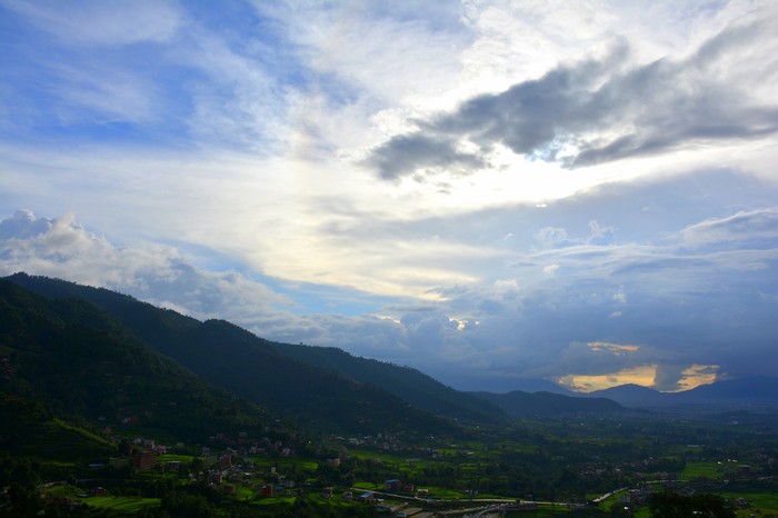 Потом начался ливень, погода в Катманду менялась очень неожиданно, сезон дождей как-никак. Но в этом есть огромный плюс для фотографа и вообще любителей красивых пейзажей, так как в сезон дождей на небе висят массивные кучевые облака, совершенно и невероятных объемов, и если погода хорошая, то создаётся впечатление, что сам Будда приветствует вас в своём городе в Гималаях.
