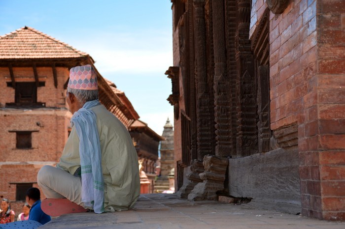 После полета мы попросили таксиста отвезти нас в Бхактапур. Такси было организовано местным туристическим бюро, но там с нас попросили много денег за поездку, поэтому мы решили договориться без посредников. По приезду в Бхактапр таксист не захотел нас высаживать, т.к. ему позвонил его начальник и узнал обо всем. Таксист хотел отвезти нас обратно в бюро, чтобы мы купили тур. Мы пытались уйти, но таксист держал меня за руку, налетела толпа зевак, которые, как я думала, будут поддерживать таксиста. Но они просто пришли поглазеть)) Мы дали ему денег, достаточную для поездки в одну сторону, и быстро ретировались. Конфликт был исчерпан, и мы продолжили нашу прогулку по древнему городу-храму. Это была окраина Катманду, тут было очень спокойно, тихо и относительно чисто. Почти не было современных строений, только древние культовые храмы и девственными узенькие улочки, незаполненные рекламой, ресторанами и прочими «достопримечательностями».