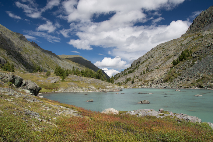 Это лето мы решили перезимовать в отрогах Катунского хребта, на реках Большой и Малый Кулагаш. Зачем? Моё желание достаточно просто: донести фотоаппарат до мест, где можно сделать такие фотографии (вид на запад с северной седловины перевала Гранёный):