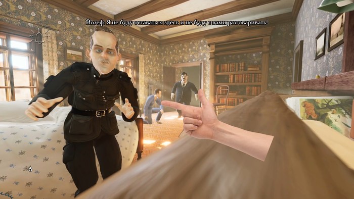 Но тонкость игры ещё и в том, что помимо нашей трегедии. Несчастье случается и с нашим лучшим другом Йозефом. К которому врывается с обвинениями...хотел бы я сказать, что это полиция, но в действительности абсолютно непонятно, кто это и почему они и не представляются, и не предъявляют обвинения, но очевидно требуют пройти с ними.