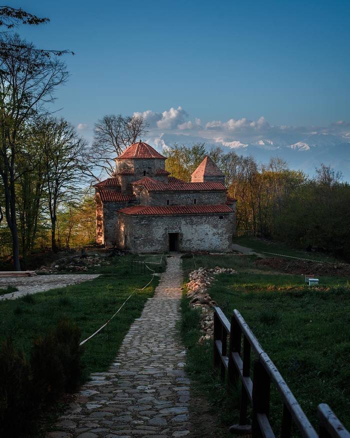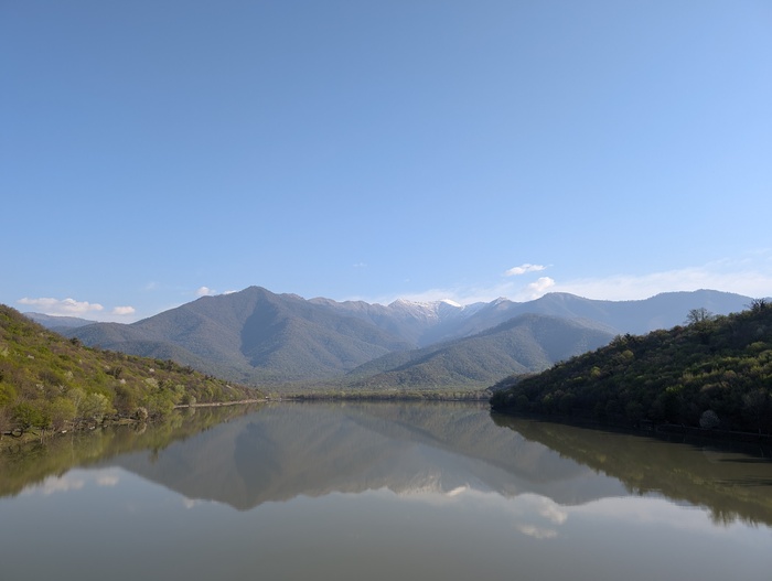 Проехав пару часов от Тбилиси, мы попали в горы. Но какие горы! Это местечко называется Кварели, а наш отель стоял немного в стороне от этой деревни. Один-одинёшенек, окружённый только лесами, горами и полями. А рядом — озеро, такое спокойное, будто знает все тайны мироздания. С одной стороны его стерегут величественные горы со снежными вершинами, а с другой раскинулась Алазанская долина. Тут вино течёт рекой, а виноградники выглядят так, словно из-за их рядов сейчас выйдут античные философы и начнут что-то рассуждать о смысле жизни.