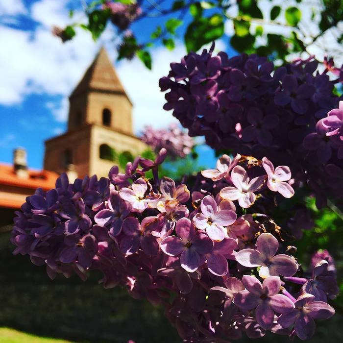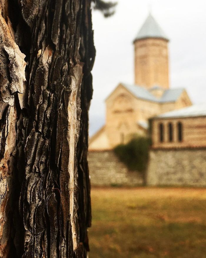Мы ехали в Кахетию. Сказать, что это «прекрасная горная местность» — это ничего не сказать. Это как описывать океан словом «мокрый». Вдоль дороги — виноградники, сколько хватает глаз. Они тянутся вдаль, как страницы увлекательной книги, от которой невозможно оторваться. Время от времени пейзаж разбавляют миндальные поля. Сначала ты просто смотришь в окно, потом открываешь рот, а через полчаса осознаёшь, что ничего не говоришь, не слушаешь, потому что просто не можешь оторвать своего взгляда от этой картинки.