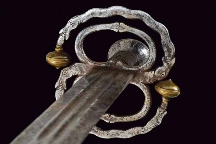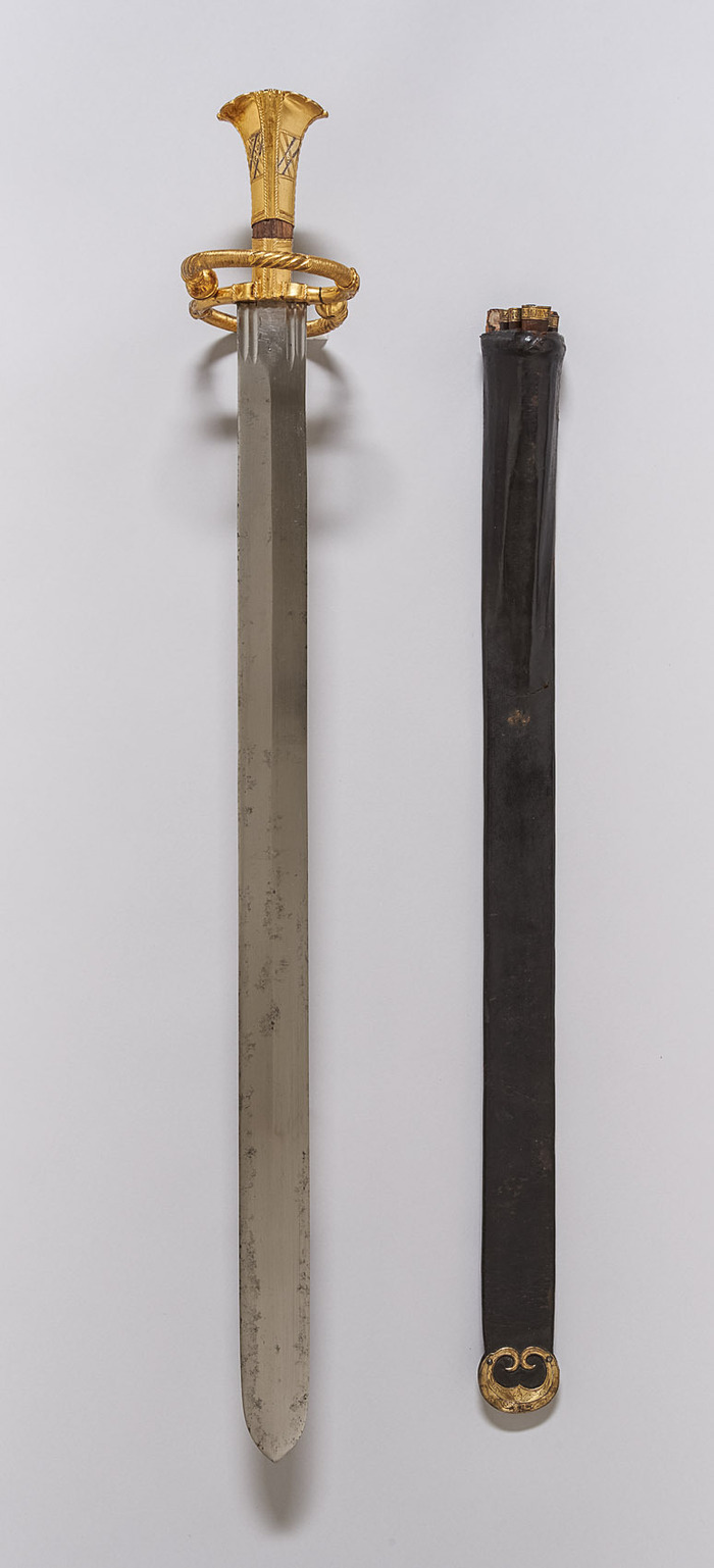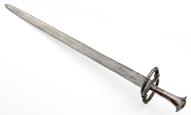 Этот кацбальгер конечно поскромнее. Время изготовления: первая четверть XVI в. Эфес южнонемецкий, клинок североитальянский. Размеры: общая длина 790 мм, длина клинка 670 мм, ширина клинка 45 мм. Вес: 1300 г. Немецкий исторический музей, Берлин
