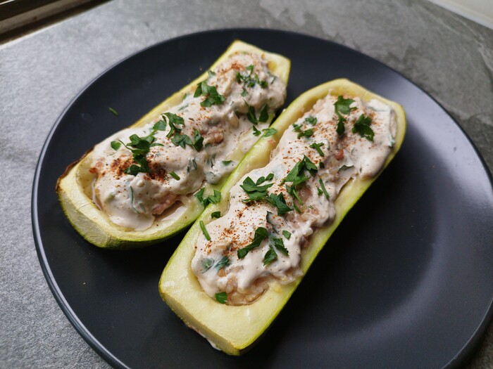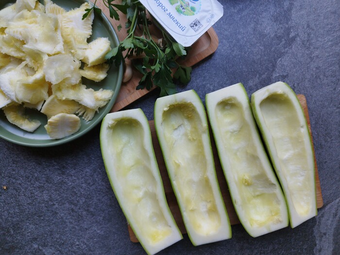 - закуска из кабачка и болгарского перца с творожной начинкой