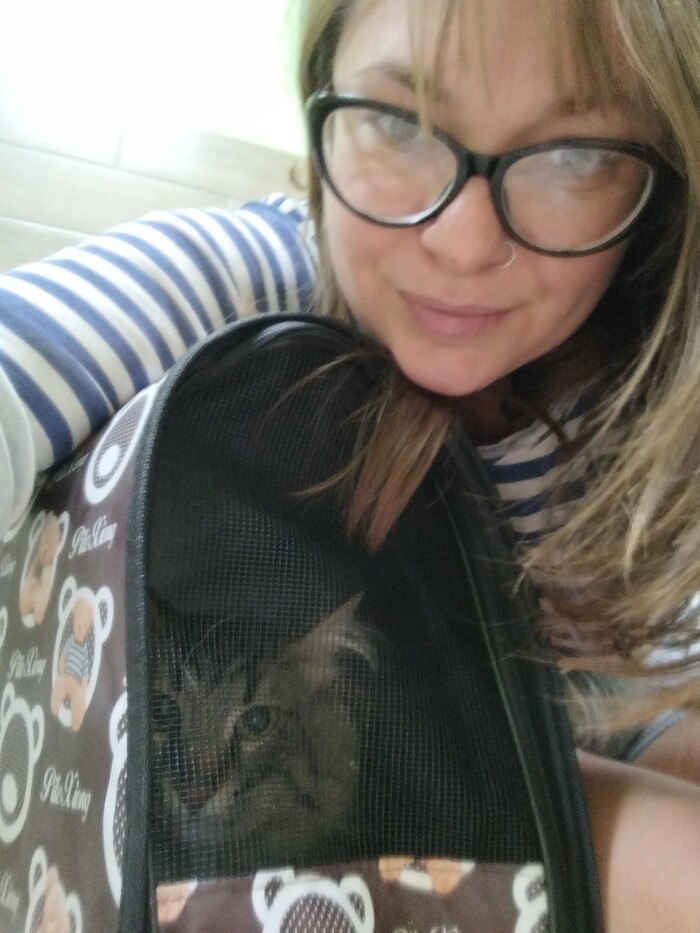 Это мы с Мохнатым Котом в ветеринарной клинике ждем свою очередь и ещё не подозреваем, что все покатится к чертям.