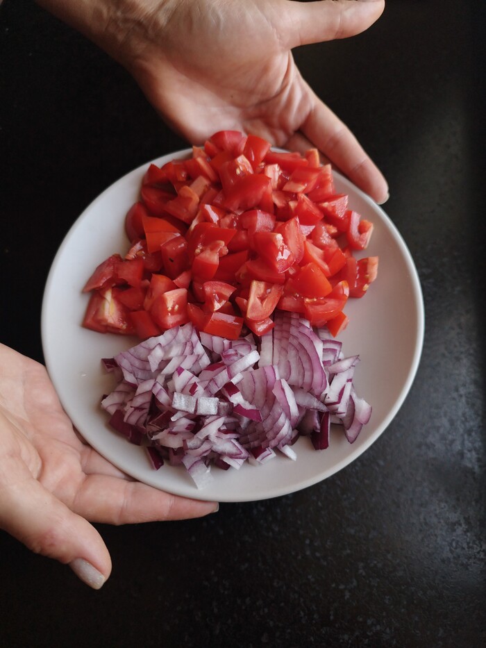 У меня на тарелке кроме самих помидоров:
