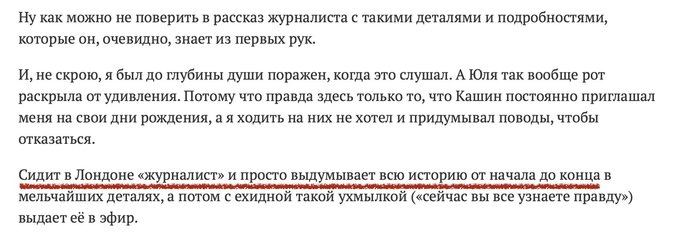 Олевский тупо в личном разговоре с Кашиным сказал, что есть мнение, что отец жены Навального связан со спецслужбами и живёт в Лондоне.