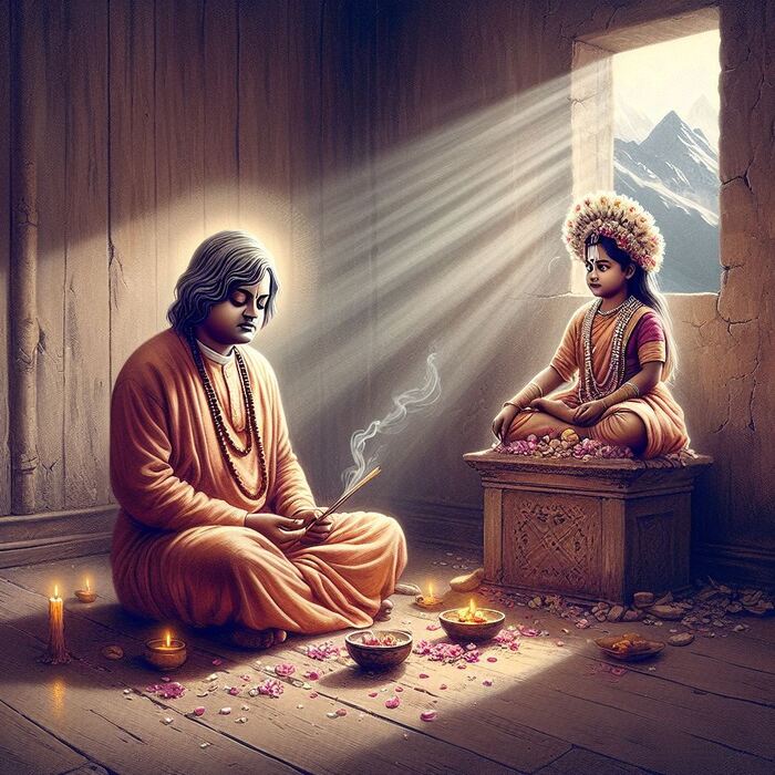 В августе 1898 года, когда солнце Кашмира заливало золотом храмы и долины, Свами Вивекананда целую неделю он предавался подвижничеству возле святилища Матери. Каждое утро он совершал особый ритуал — почитание юной дочери брахмана как живого воплощения Ума Кумари.