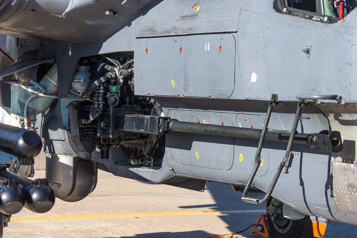 На внутренние пилоны крыла могут подвешиваться контейнеры УПК-23-250 (9-А-681) с пушками «ГШ-23Л» калибра 23 мм и боезапасом 250 патронов. Контейнер длиной 3166 мм и максимальным диаметром 450 мм без боекомплекта весит 120 кг. Подвеска контейнера под вертолет занимает 8-12 минут, а укладка патронной ленты — 15-20 минут.