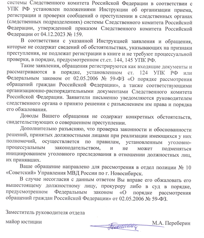 Я направил обращение в СК по данному поводу. Сегодня пришёл ответ, где они отказались даже проводить доследственную проверку, потому что не видят в этом преступления.