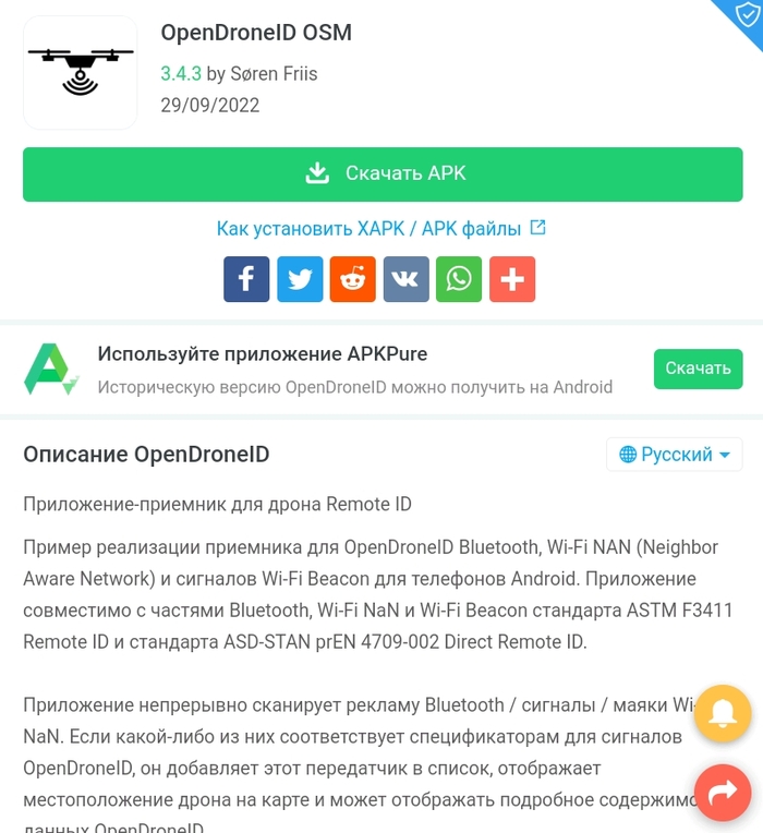 Приложение "Open Drone ID" легко гуглится. И является достаточно свежей версией(сентябрь 2022).