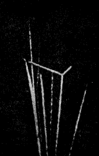 Увиденное подтверждается снимками треков (следов) альфа-частиц в камере Вильсона - изредко треки заканчиваются вилками и изломами. Это происходит из-за взаимодействия ядер. Трек с вилкой показан на рисунке.