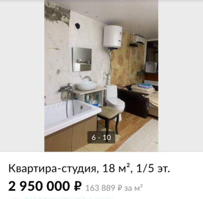 В Подмосковье продается студия, в которой унитаз расположен рядом с диваном. Просят за такую около 3 миллионов.