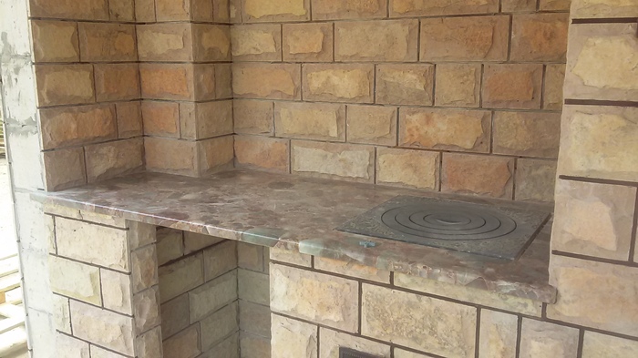 Как-то раз приезжает ко мне клиент и молвит - хочу столешницу для летней кухни. И приносит с собой кусочек камня из облицовки, чтобы материал для столешницы подобрать.