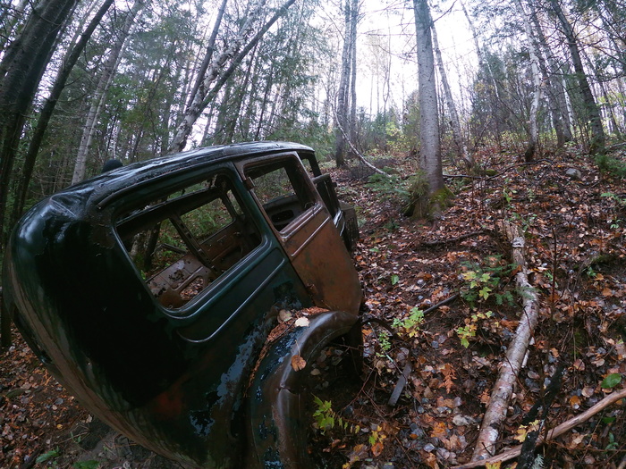 Стоило оставить на одну ночь нашу машину без сигнализации, и вот что вышло Непонятно как очутившаяся в канадском лесу старая машина без колес:
