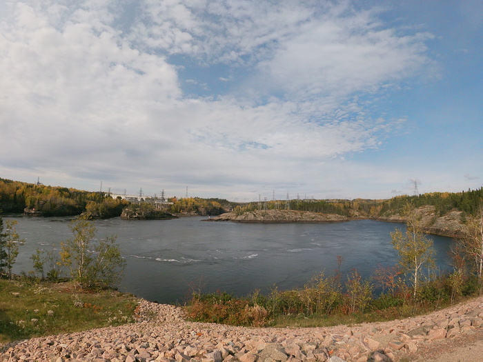 Бэ-Комо; прячущаяся за деревьями гидроэлектростанция МакКормик выдаёт свои 235 МВт в электрическую сеть Квебека: