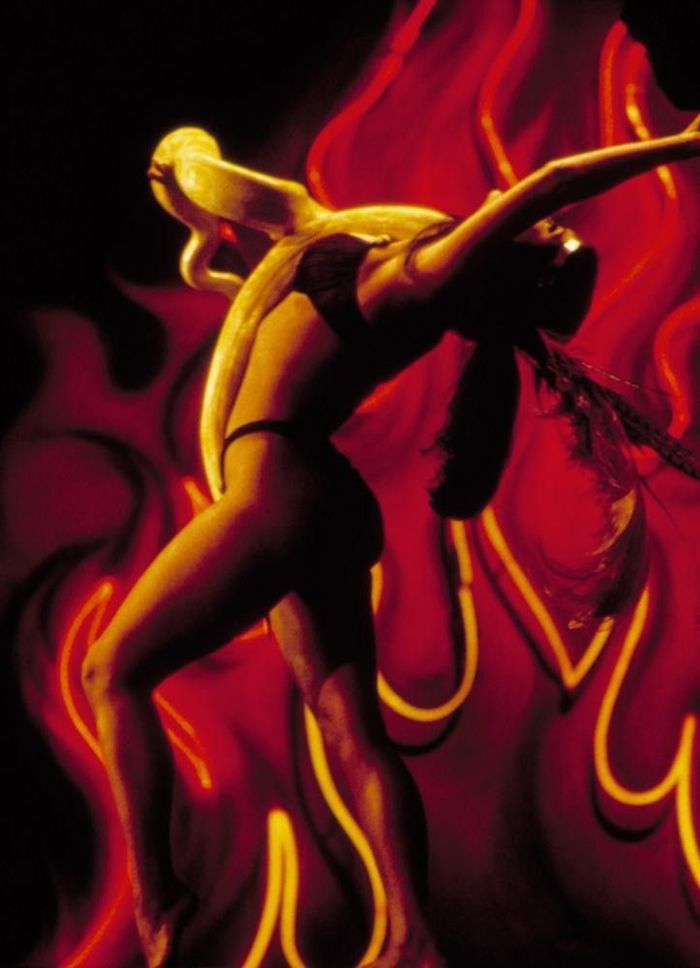 Фильм отражает именно эту амбивалентность: он разделен на две половины, как две секции диптиха. На одной секции образ мачо Майка, триумфальный и выполненный в стиле фильмов того периода, с царапинами на негативе и