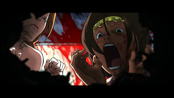 В фильме экспериментируют не только с цветокоррекцией, но и интегрируют в кино полноценную анимационную историю в виде целой главы (глава 3. История О-Рэн). Ты погружаешься в историю внутри истории, переносишься в другой мир. Это не только отлично разбавляет визуальную часть (переключает восприятие), но и отлично раскрывает персонажа-антагониста, его характер, мотивы и прошлое, подчеркивает культурную особенность. Теперь это не просто очередная марионетка, а живой герой, достойный соперник, из-за чего бой имеет слегка меланхоличный настрой, ведь мы понимает исход, но не перестаем переживать за героев. Сам же Билл всю главный антагонист, всю первую часть остается загадочным и безликим злом. Тарантино всегда умел раскрыть персонажа, наполнить его чувствами, мыслями, создать напряжение, заставить переживать и ждать самые неожиданные повороты.