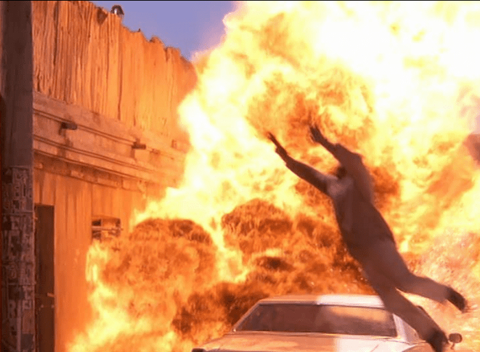 Уже давно установлено, что в любом стоящем боевике обязательно есть кадр, в котором герои непринужденно уходят от взрыва. В фильме «Десперадо» есть один из самых запоминающихся примеров этого — но, хотя в фильме это выглядит очень круто, для звезд Антонио Бандераса и Сальмы Хайек все оказалось слишком близко для комфорта.