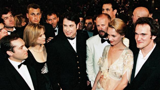 Тарантино, Ума Турман, Брюс Уиллис и Джон Траволта — Криминальное чтиво (Канны)